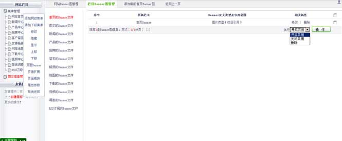 在栏目列表中选择栏目所属Banner图,对其修改、添加、开始共用、删除操作。